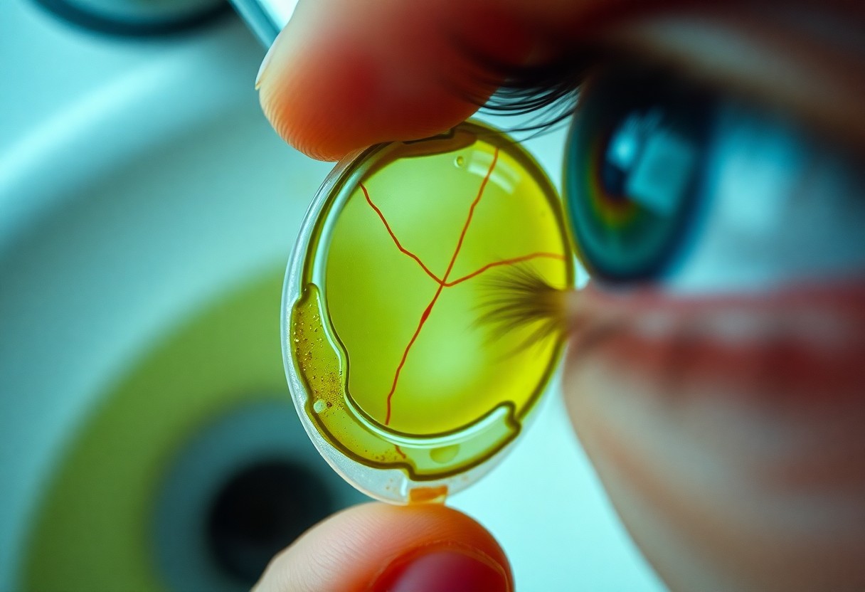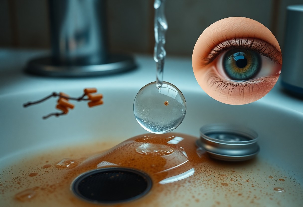 When you expose lenses to tap water, dissolved minerals (calcium, magnesium; hardness often 60-180 mg/L), trace contaminants, and microbes transfer from hands or water to the lens surface, altering optics and tear-film interaction. Even low-level bacteria or protozoa can be entrapped in deposits; CDC guidance warns against any water contact with lenses because biofilms and mineral films markedly increase infection and irritation risk.