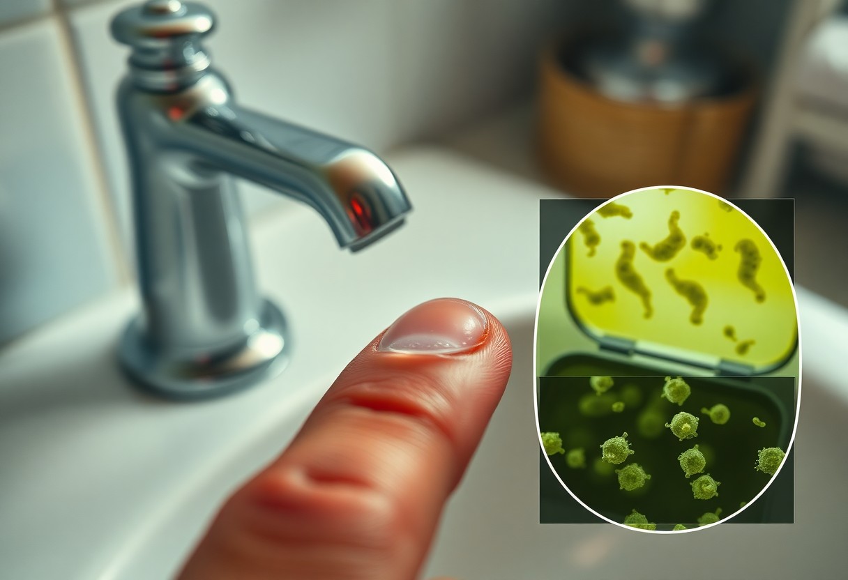 Acanthamoeba lives in tap water, showerheads and hot tubs and forms hardy cysts that cling to lenses when you wet or touch them, leading to painful ulcers. Pseudomonas thrives in warm, nutrient‑rich water and can replicate rapidly (doubling times under optimal conditions), so when your hands contact faucet spray or sink biofilms you can transfer high loads of pathogenic bacteria directly to the lens surface.